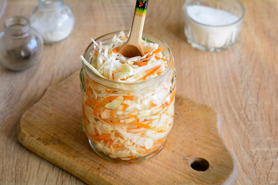 По всем правилам капуста квасится не менее 3-7 дней. Недобросовестные производители, чтобы ускорить процесс, используют уксусную кислоту: продукт готов уже через два дня, но пользы от него никакой.