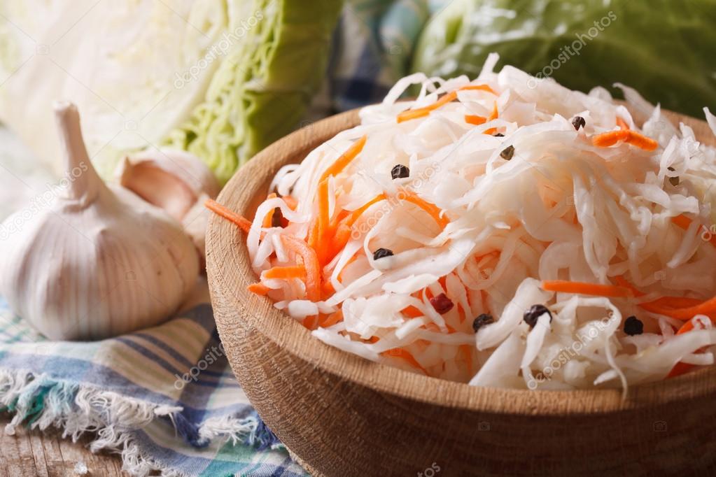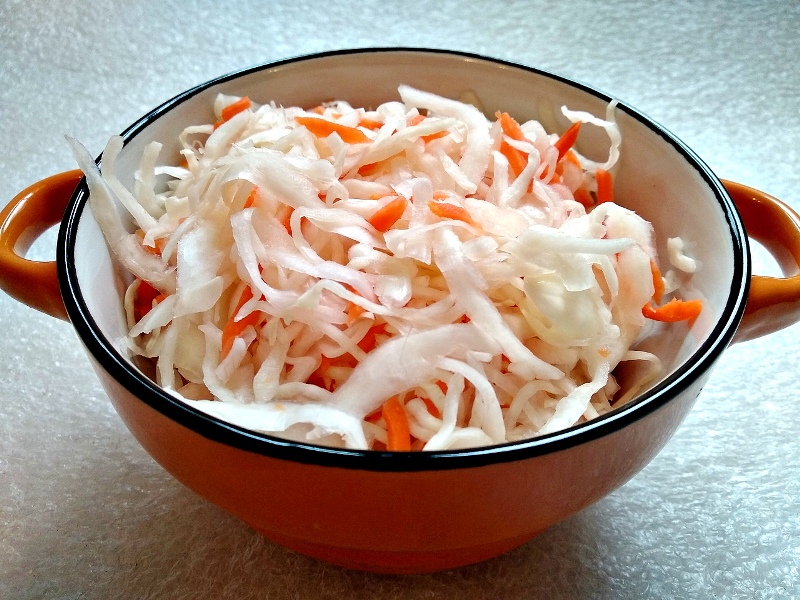 В классическом понимании в состав квашеной капусты входит всего 3 ингредиента: сама белокочанная капуста, морковь и соль.