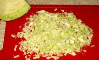В отличие от предыдущих рецептов в этом варианте капусту мы будем не шинковать, а резать квадратиками со стороной в 1.5 см. Для того, чтобы она в котлетах чувствовалась, а не перемешивалась с мясом.