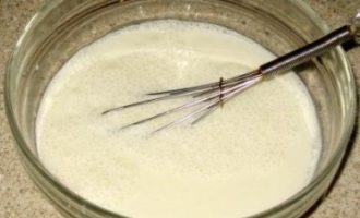 - Смешиваем сметану, воду, муку, соль. Можно положить кусочек мягкого сливочного масла.