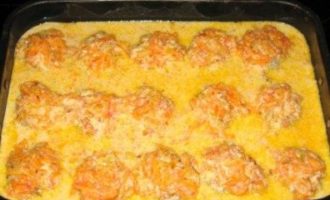 7. Выкладываю полуфабрикаты в жаростойкую форму с высокими бортиками и заливаю соусом на две трети высоты бортиков.