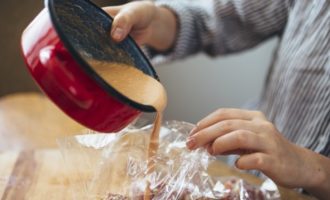 - Выкладываем в стеклянную форму и готовим соус, в котором будем запекать в духовке.