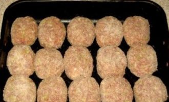3. Из полученного фарша налепим котлетки произвольной формы. Укладываем их в форму для запекания, предварительно смазанную маслом.
