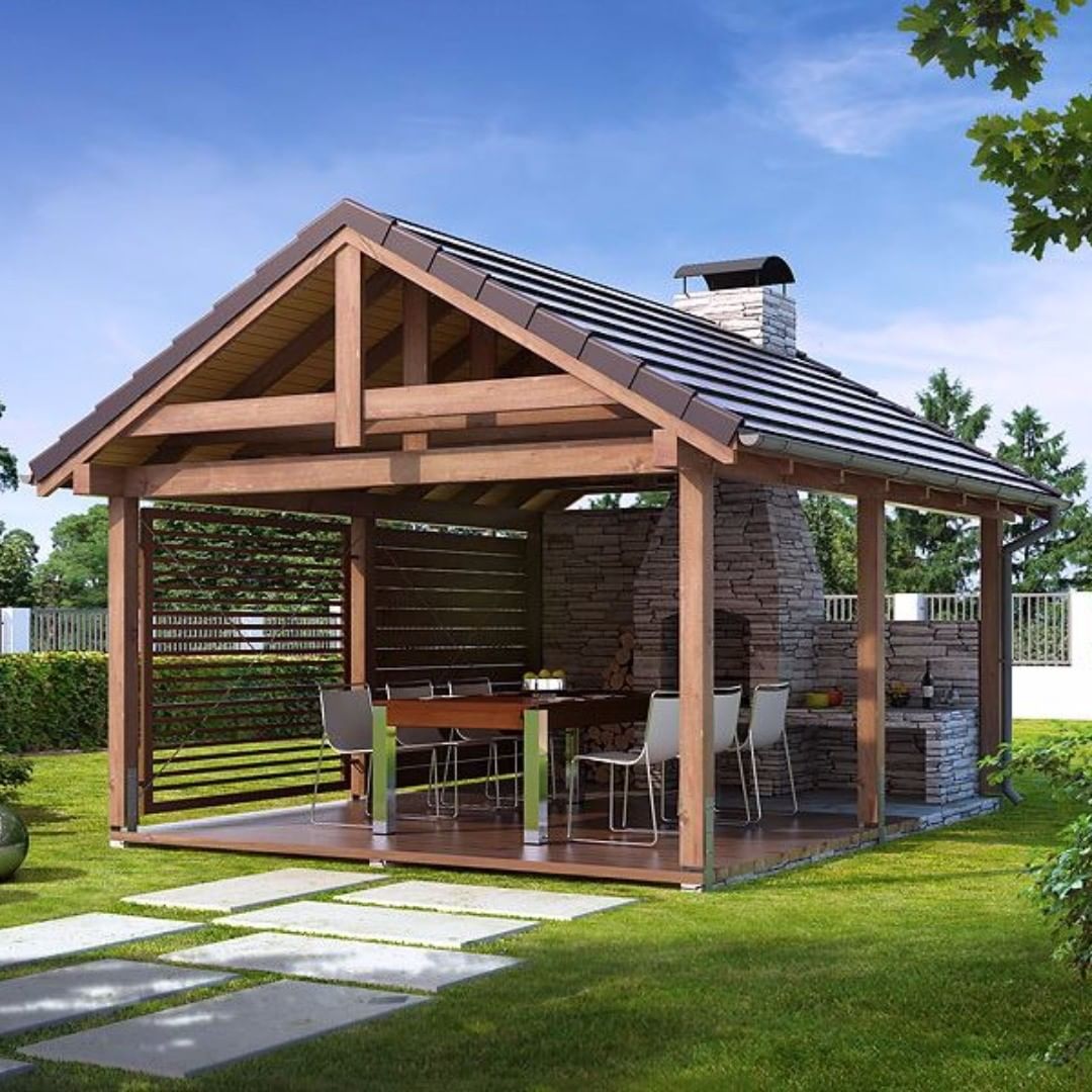 Дизайн вашей кухни может предполагать наличие стен или их отсутствие, однако опорные столбы, которые будут удерживать крышу или крепление к навесу, скорее всего, будут иметь. Материалами для стен могут быть: