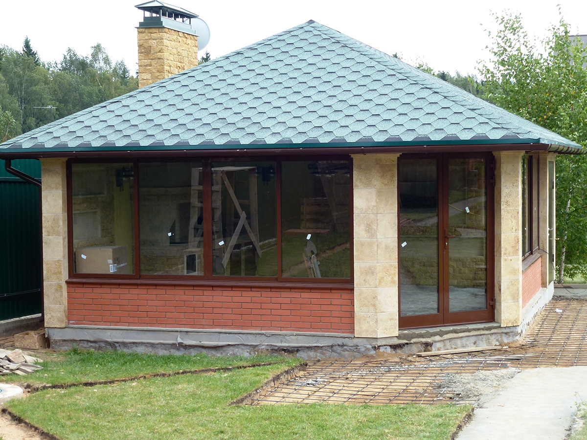 Крыша закрытой кухни должна долговечной и практичной. Поэтому приобретая материалы для ее монтажа, можно остановить выбор на: