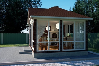 Ее можно оснастить камином, барбекюшницей либо печью.