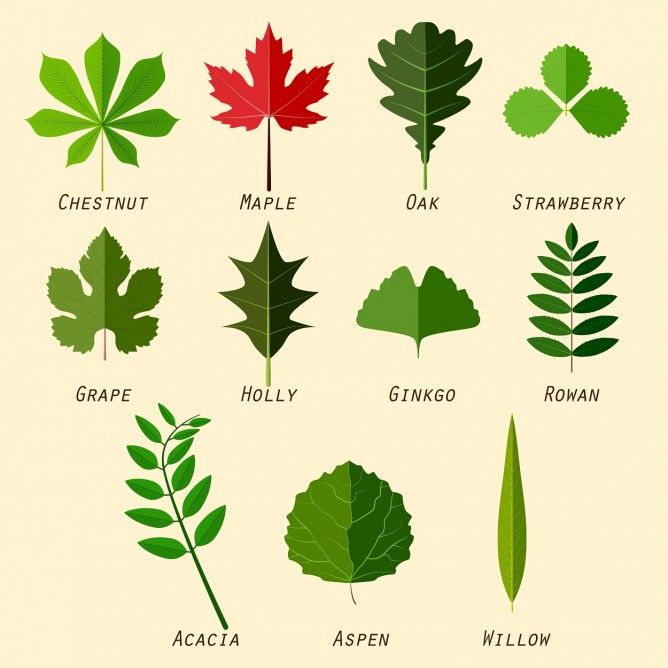 Есть немало деревьев с овальными или продолговатыми листьями.