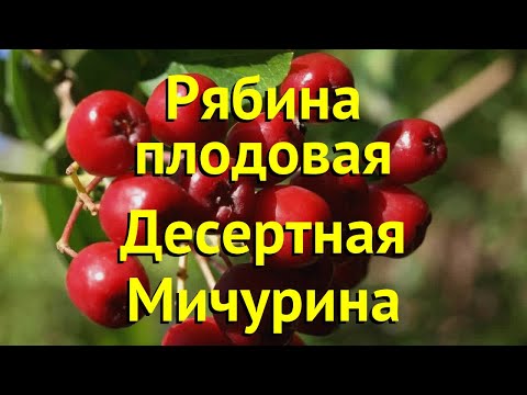 Она обладает поистине отличными вкусовыми качествами и вырастает всего 3 метра в высоту, что удобно для небольших участков и садов. Выведен данный сорт с участием мушмулы, поэтому ягодки рябины по форме напоминают плоды этого редкого плодового кустарника. Вкус сочный и сладкий с небольшой кислинкой, но даже без намека на горечь. Сам Иван Владимирович называл получившийся сорт самым вкусным из всех. Мичуринская Десертная не только радует вкусными ягодами, но и украшает собой пейзаж. Крона у дерева округлая, с возрастом разрастается в диаметре. Листья зеленые, а к осени «загораются» желтыми и красными оттенками.