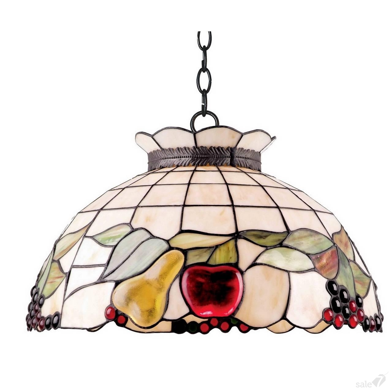 - Прованс, кантри – в этих тяготеющих к простоте стилях витражные светильники тоже будут уместны, если их плафоны украшены фруктами и овощами.