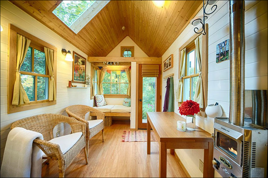Этот причудливый коттедж площадью 970 квадратных футов, безусловно, находится на большой стороне движения крошечных домов, но в этом маленьком доме есть много дизайнерских идей для небольшого пространства.