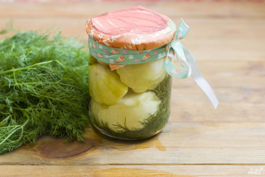 В банках на зиму патиссоны вкусно маринуются с зеленью, готовятся без стерилизации, консервированные в кисло-сладком маринаде с уксусом. Патиссон хорошо впитывает в себя ароматный рассол. Перед тем, как мариновать патиссоны, лучше вырезать плодоножки, чтобы маринад быстро пропитал мякоть овоща.