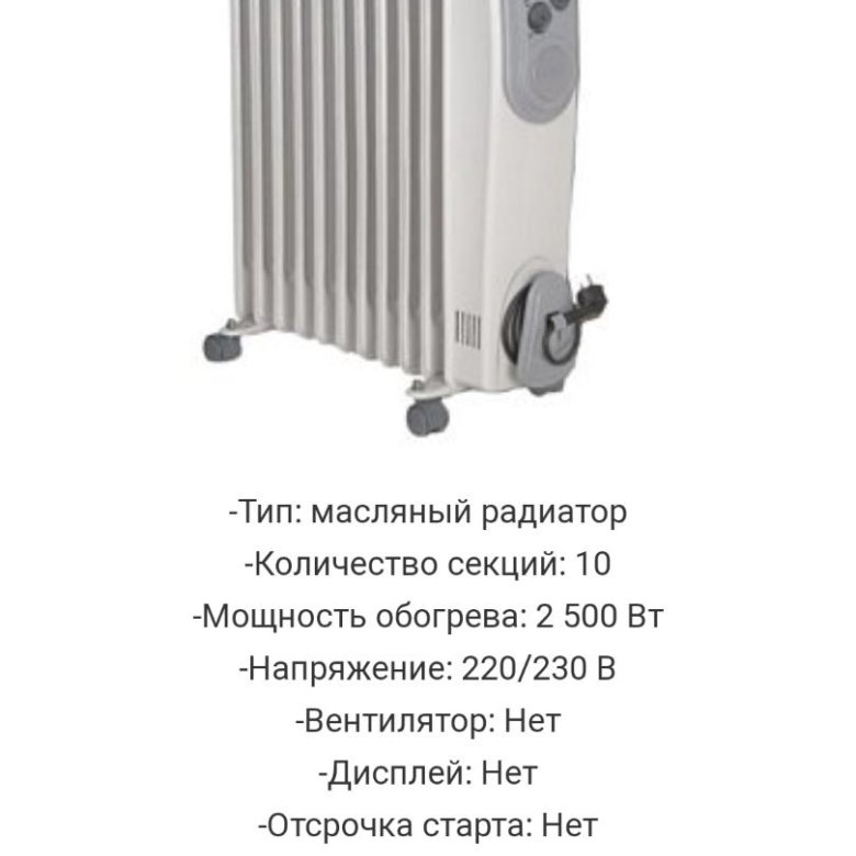 Корпус и ребра нагревателя заполнены диатермическим маслом. «Должен ли я долить масло?» — наиболее часто задаваемый вопрос о масляных обогревателях. Нет, масло в маслонаполненном радиаторе доливать не надо, — говорится в ответе. Оно никогда не заканчивается, потому что масло используется не как топливо, а как резервуар тепла. Он просто циркулирует через нагреватель в течение всего времени использования.
