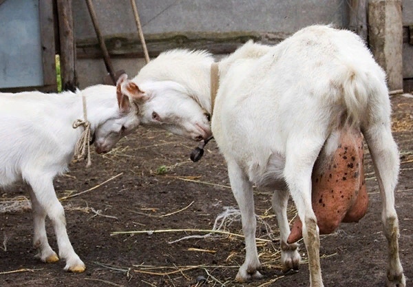 - При проведении стандартного обследования можно обнаружить, что температура тела козочки повышена, а прикосновение к вымени доставляет боль, животное выглядит уставшим