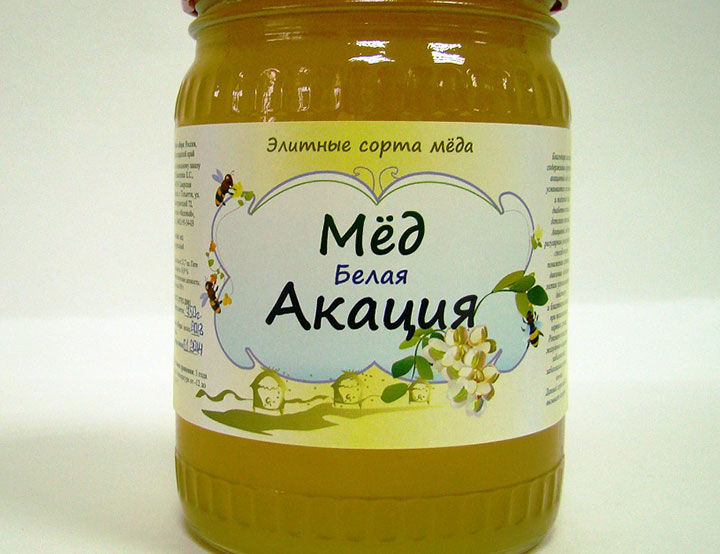 Полностью прозрачный и белый с сахаром мед получают из цветков белой акации. А с желтым — светлый, с зеленоватым оттенком. Продукт имеет мелкую зернистость. Медленно смешивают мед из акации. Эти свойства обусловлены низким содержанием сахарозы и высоким содержанием фруктозы.