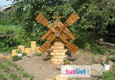Из-за того что ландшафтный дизайн пользуется большой популярностью стоимость элементов декора не маленькая. Мастера по дереву с охотно изготавливают декоративные мельницы любого размер и стиля. Иногда можно встретить настоящий шедевр, который с великим удовольствием украсит ваш сад. Для изготовления мельницы подойдет любой материал, но лучше всего для этого подойдут доски покрытые лаком.