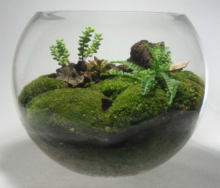 Выращивать бриофиты можно в любой емкости, но эффектней всего они смотрятся на дне прозрачных аквариумов или ваз, в неглубоких плошках, глиняных тарелках и чашах.