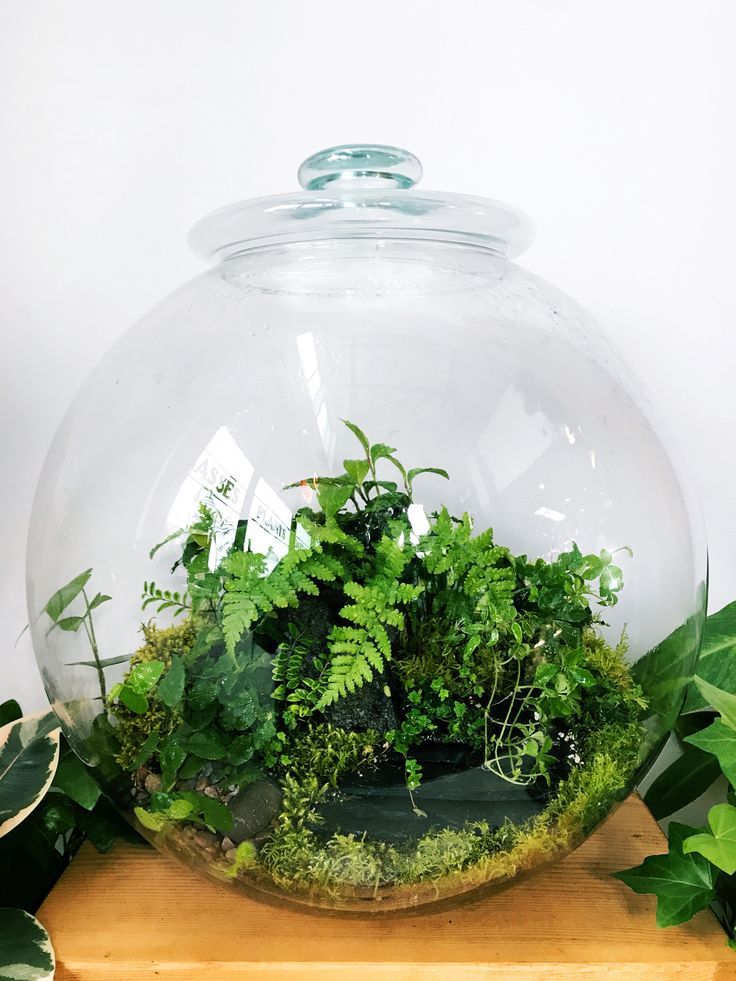Это делается с использованием стеклянного или пластикового контейнера, такого как террариум или стеклянная банка, и различных природных материалов, имитирующих природу.