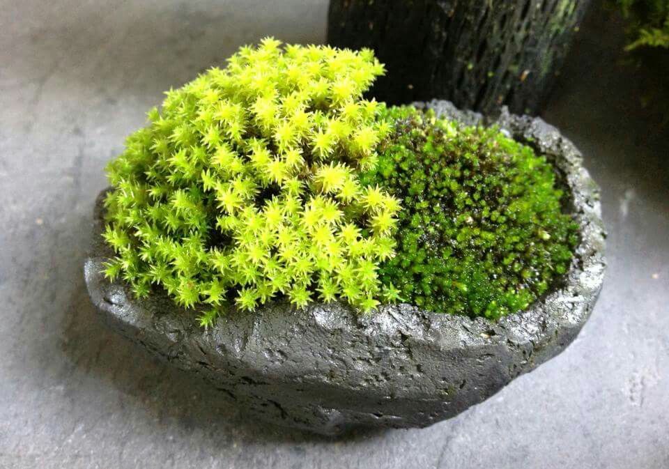 Смешивание нескольких различных видов бриофитов поможет создать удивительный коллаж из различных оттенков изумрудного цвета.