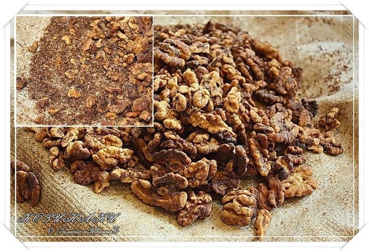 Рисунок 6. Экскременты насекомых, указывающие на проникновение личинок в орехи.