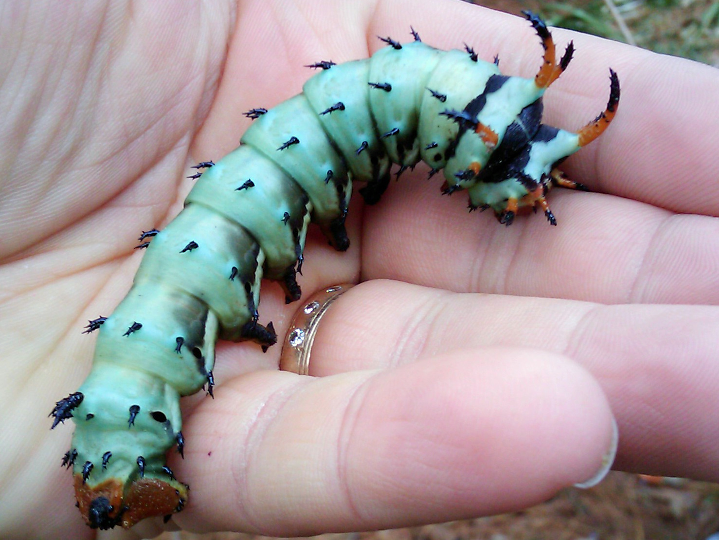 Личинки окрашены в светлые цвета: розовый, молочный, песочный. Жизненный цикл длится около 45-50 дней.