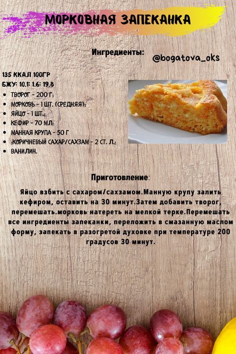 Очень легкая, совершенно нежирная, не жареная и с достаточным количеством витаминов и микроэлементов. Этот как раз тот случай когда речь идет о вкусном и полезном десерте. И кстати, морковная запеканка получится не хуже и с манкой, если вы её любите и хотите ввести в рацион ребенка незаметно.