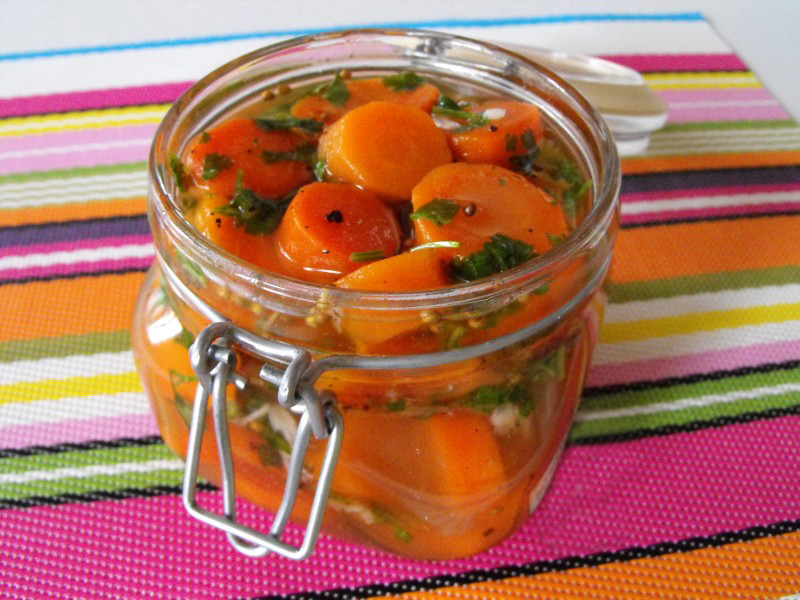 Для более твердых продуктов, таких как свекла и морковь, может потребоваться короткий период бланширования, чтобы они стали мягкими. При мариновании овощи укладывают в стеклянную банку для консервирования с добавлением приправ на ваш выбор, например: