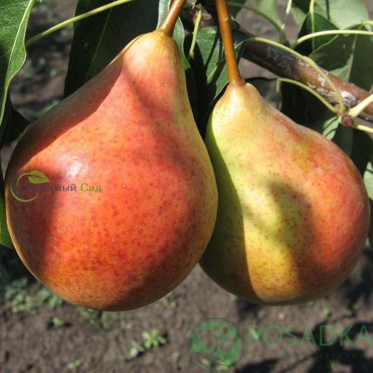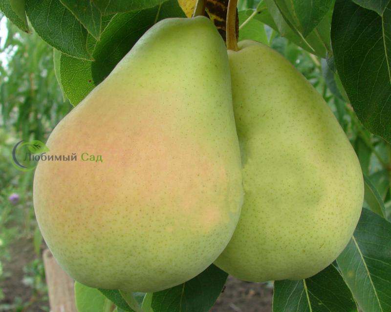 Плоды ее среднего размера, массой около 120-140 граммов, правильной грушевидной формы без ребер и бугров. Кожица довольно плотная, зеленовато-желтого цвета, ближе к созреванию ее украшает красноватый румянец на солнечной стороне.