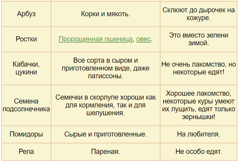 Можно ли давать курам арбузные корки, дыню, яблоки, помидоры и другие овощи?