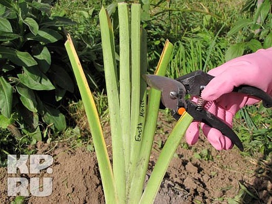 - К середине сентября листва и стебли желтеют и усыхают. Постепенно их срезают секатором, чтобы на растении не разводились грибки.