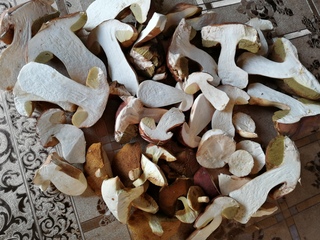 Обычно для этого используют деревянные доски либо пергамент. Маленькие экземпляры можно сушить целиком, тогда как крупные экземпляры правильнее будет нарезать слайсами толщиной 0,8–1 см. Некоторые хозяйки нарезают грибы очень мелко, что существенно сокращает время засушивания.