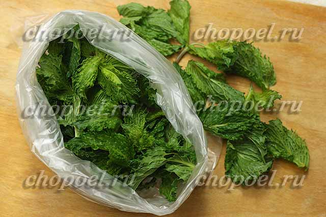 Листья мяты и мелиссы нужно хорошенько промыть под струёй холодной воды, высушить и сложить в плотные полиэтиленовые пакеты.