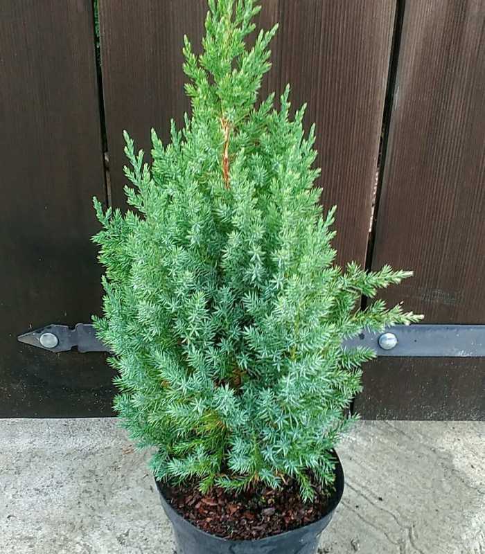 | Scyrocket | Вид представлен высокими (до 8 м) кустарниками колонновидной или конической формы с довольно рыхлой кроной. Относится к быстрорастущим – до 15-20 см ежегодного прироста. Хвоя чешуйчатая, короткая и острая, различных оттенков (серебристо-серая, голубовато-зеленая и др.). Шишкоягоды серо-голубые. Любит солнечный свет и хорошо дренированную почву. |