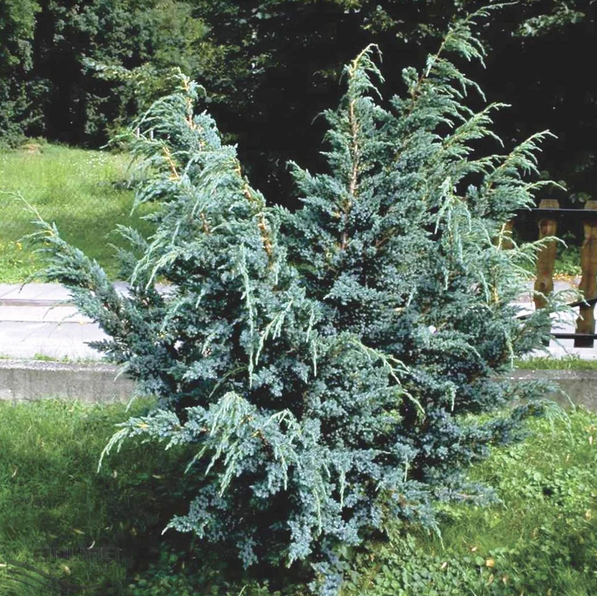 - Сорт Hetzii представляет собой растение высотой до 1,5 м. Его широкая крона вырастает до 2 м. В течение всего года кустарник покрыт серо-голубой хвоей.