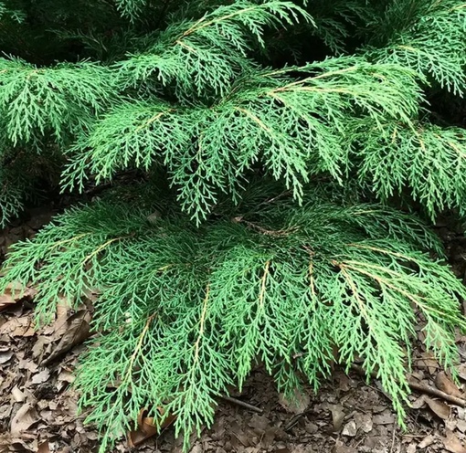 Kuriwao Gold | Довольно высокие и широкие кустики этого сорта кажутся необычайно ажурными из-за окраски хвои. |