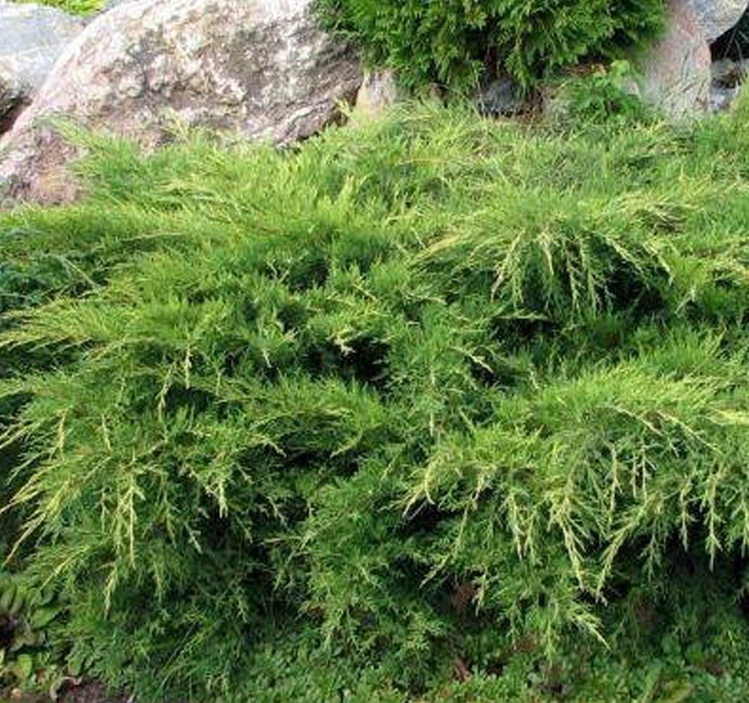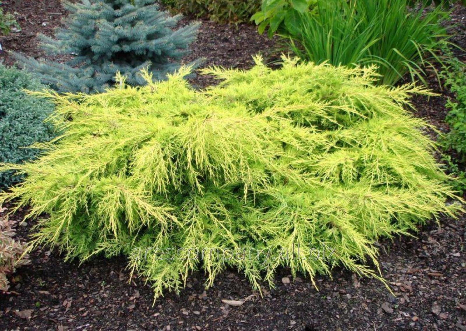 - Сорт Pfitzeriana Aurea – раскидистый кустарник высотой до 1 м. Горизонтально стоящие густые ветви образуют крону шириной в 2 м. Золотисто-лимонные молодые побеги покрыты желтовато-зеленой хвоей. Летом окрас растения меняется на желто-зеленый. Предпочитает солнечные места, поскольку в тени становится просто зеленого цвета. Растет медленно.