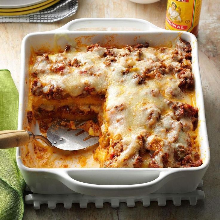 Эта сытная запеканка по вкусу напоминает лазанью и станет сытным блюдом, если подавать ее с зеленым салатом и чесночным хлебом. — Ардайс Пиль, Пойнетт, Висконсин