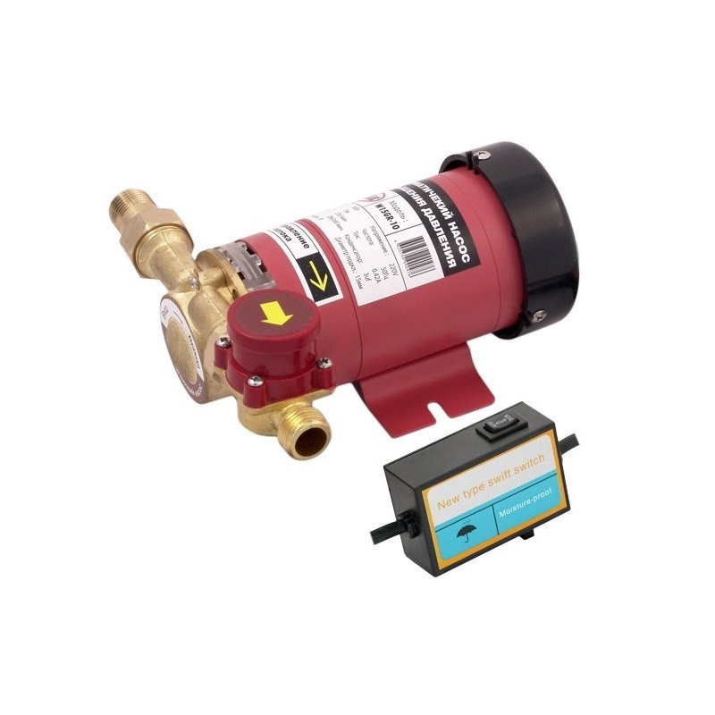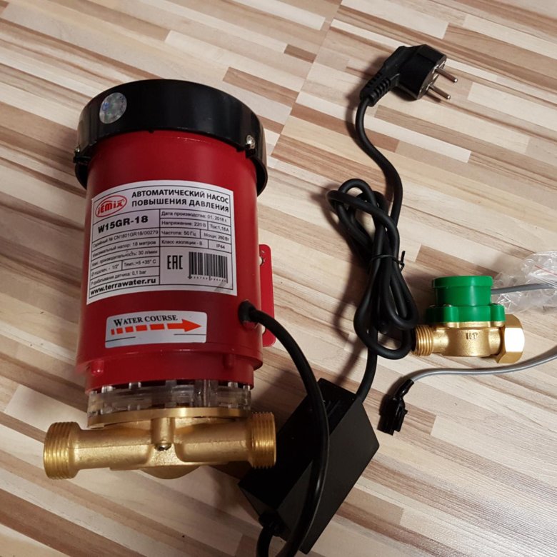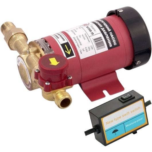 Водяной насос, который создан для повышения воды в водопроводе работает с помощью небольшого электродвигателя. Насос, во время работы вращается тем самым нагнетая давление в трубах. Насос оснащен также пластиковым корпусом, который имеет весьма небольшие размеры.