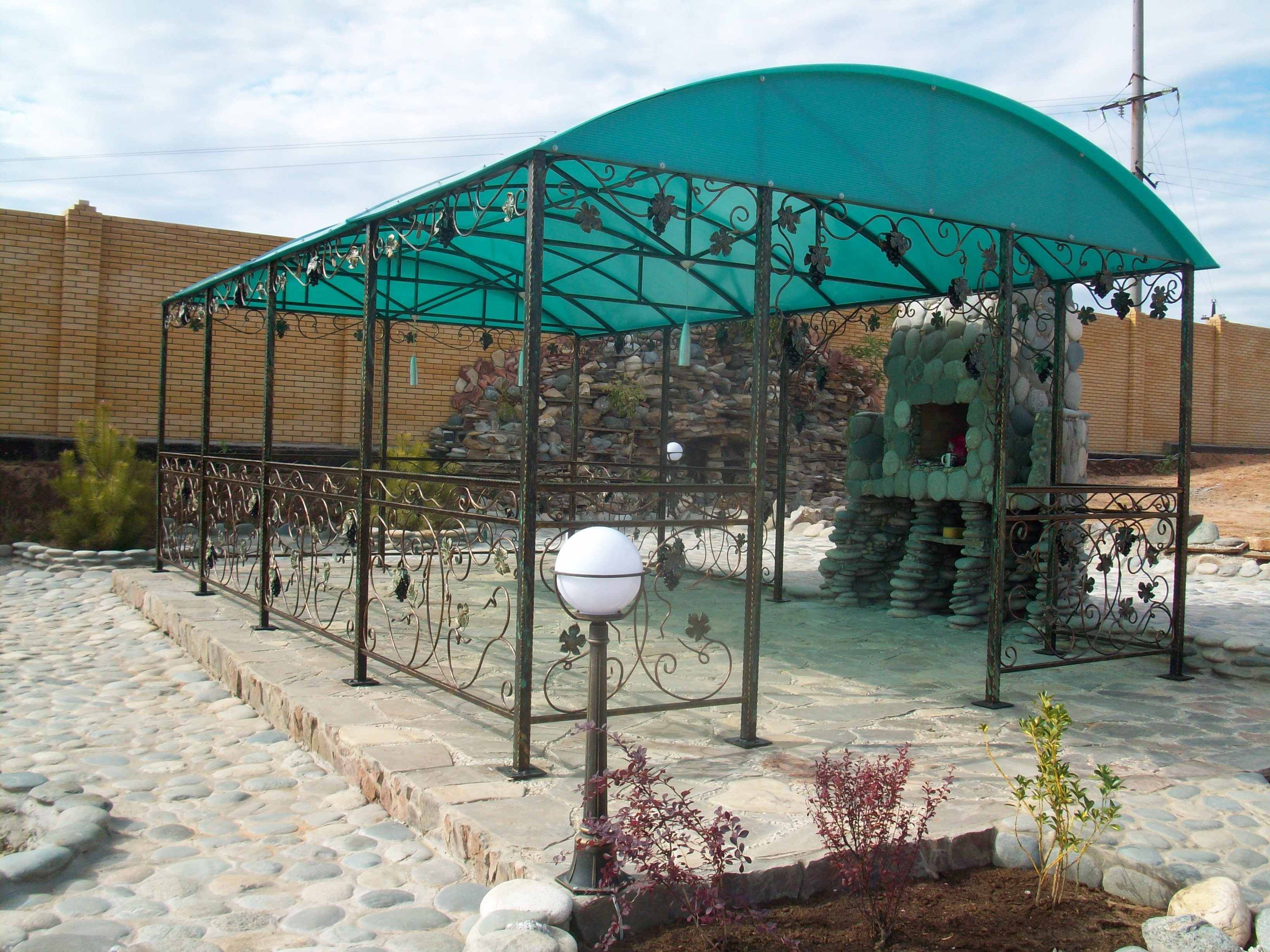 - Декоративные или функциональные конструкции. Если задача первых дополнить ансамбль усадьбы и стать уникальным элементом ландшафтного дизайна, т о последние могут отличаться лаконичностью и простотой, но при этом являться отличным защитником от ветра, пыли, зноя и даже холода.