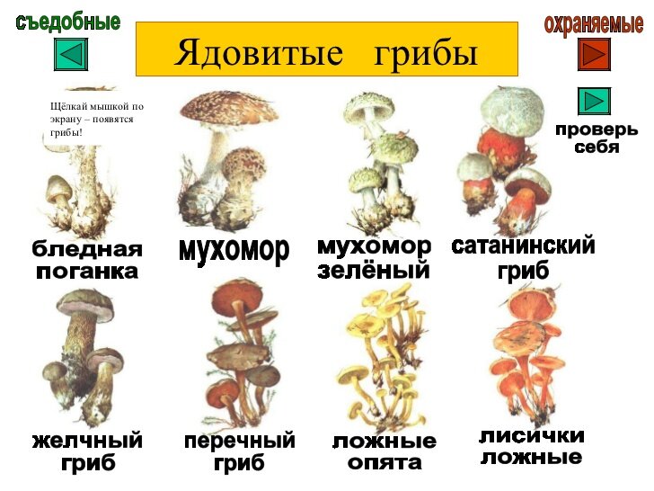 Ядовитые грибы / Съедобные грибы, ягоды, травы