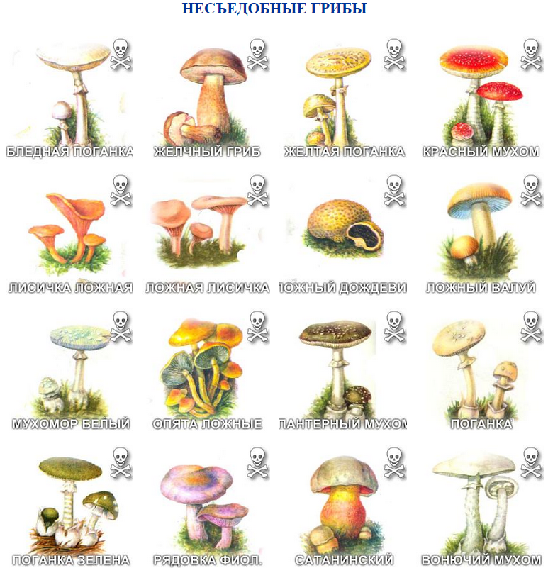 какие виды грибов нельзя собирать в лесу, какие ядовитые грибы есть в России, симптомы отравления ядовитым грибом