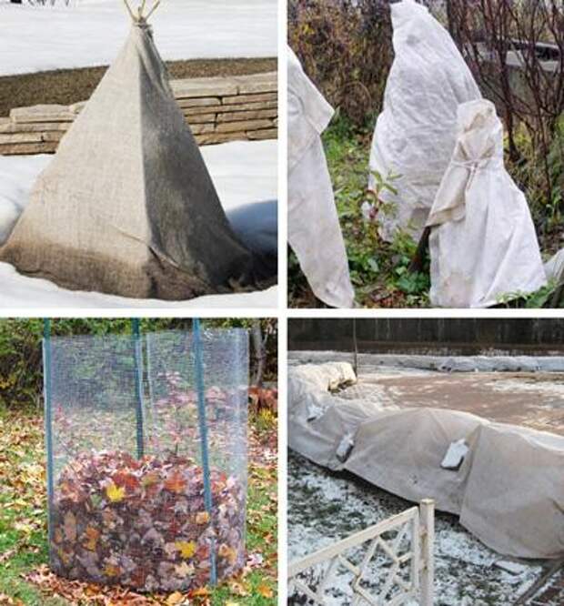 Обычно используют один из двух способов сооружения укрытия для зимовки кустарника: