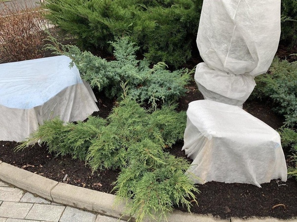 - Молодой куст можно сверху накрыть деревянным или пластмассовым ящиком с прорезями. Для некоторых экземпляров можно делать каркас из 2-3 больших ящиков, связанных друг с другом и уже их обматывать укрывным материалом, а его сверху скотчем.