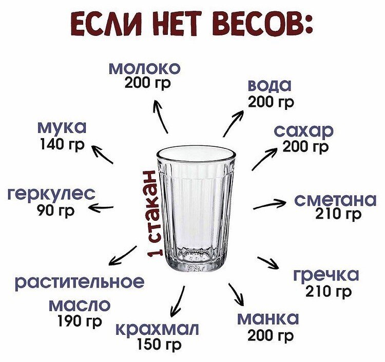 Таким образом, если в рецепте вы встречаете указание на 1 стакан, имеется в виду тот самый граненый стакан на 200 миллилитров.
