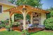 Это еще один пример беседки в викторианском стиле, выполненной полностью из дерева, за исключением жестяной крыши. Детали конструкции очень замысловаты, и вся конструкция стоит на приподнятом фундаменте со ступенями.