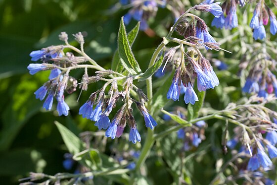 Окопник лекарственный. © Matt LavinОкопник (Symphytum) — род многолетних лесных травянистых растений семейства Бурачниковые (Boraginaceae), распространённых по всей Европе от западной Азии до Британских островов. Род включает около 7 видов.