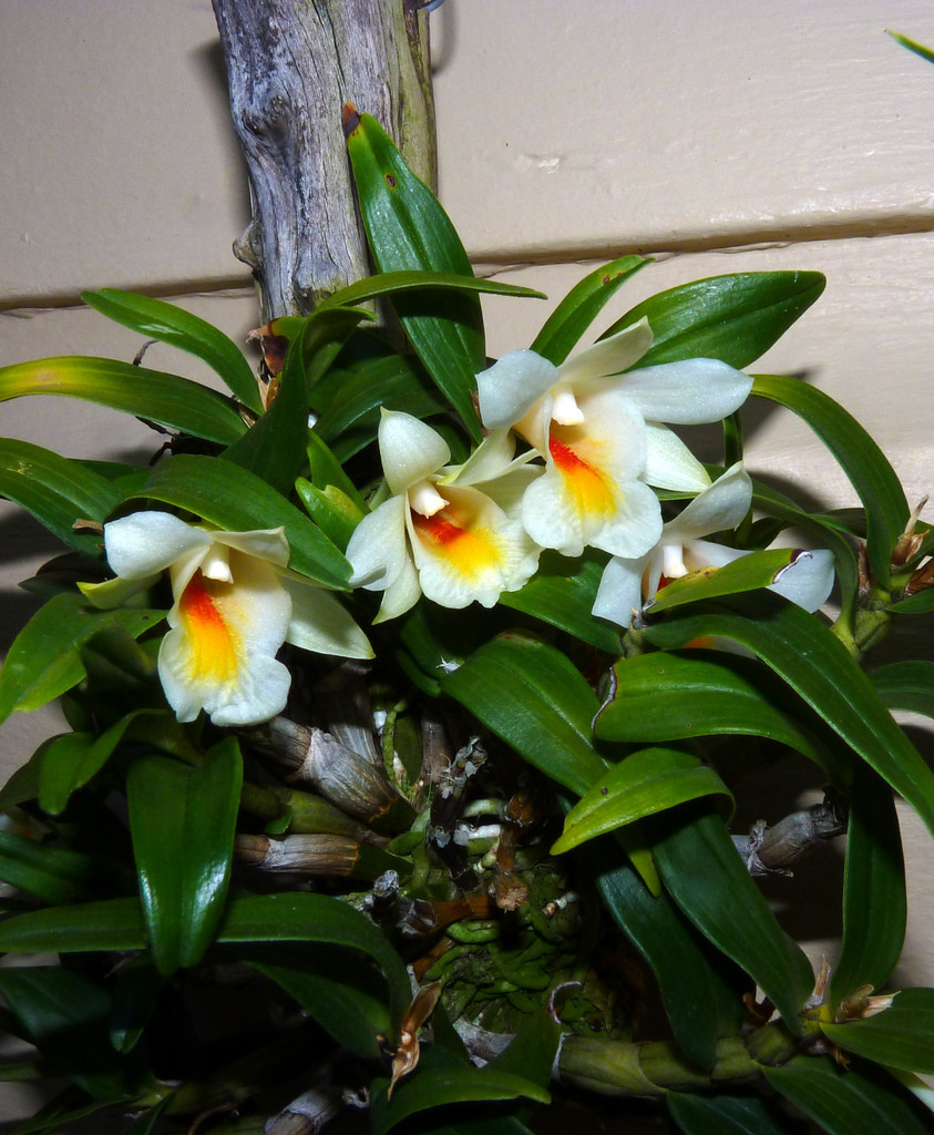 Другой вид орхидей, которые вы можете выращивать дома, я называю «тайскими ресторанными орхидеями». Эти виды орхидей являются гибридами Dendrobium и их можно найти в тайских ресторанах, которые украшают свои столы свежесрезанными цветами. Они бывают разных цветов (белые, зеленые, фиолетовые, розовые, желтые и другие) и требуют довольно теплой среды. На самом деле, они могут сбрасывать листья зимой, когда температура окружающей среды падает ниже 60°F (15°C) или около того. Но «тайская ресторанная орхидея» — это всего лишь одна небольшая группа гибридов в роду Dendrobium.