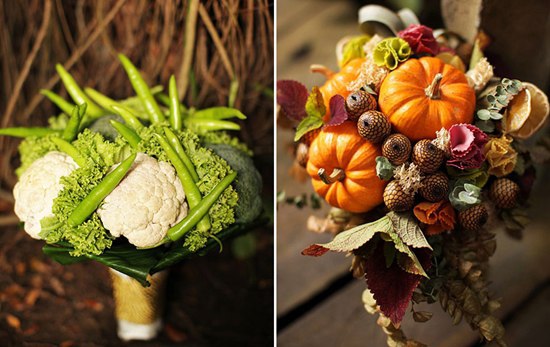 Осень – время свадеб. Летняя шара сошла на нет, постепенно стало прохладно и красиво. Природа настраивает нас на романтическое настроение. И разве осенний букет не будет гармонировать с платьем невесты? На белоснежном фоне будут красиво смотреться ярко-желтые цветы вперемежку с листьями и другими растениями. К тому же, листья, колосьями и веточками рябины можно оформить торжественный зал.
