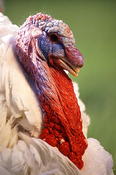 Даже ребенок различит индюка среди других видов домашних птиц. Сделает он это по характерному носовому отростку, располагающемуся на голове птицы, и свисающему до области грудной клетки.