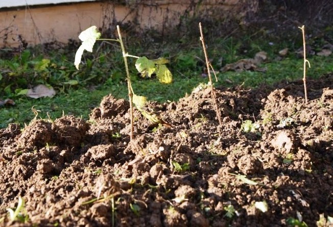 Высаживают малину осенью – после опадания листвы или весной – до распускания почек. Перед посадкой землю обильно удобряют: вносят перегной, золу, компост и комплексные удобрения. Органику добавляют в посадочные ямы из расчета 1 ведро на куст. В лунку добавляют и минеральные удобрения – по две столовых ложки калийных солей и фосфатов. После высадки черенков плантацию обильно поливают и мульчируют. Слой подсыпки должен достигать 10 см. В качестве мульчи используют навоз, перепревшую листву, солому.