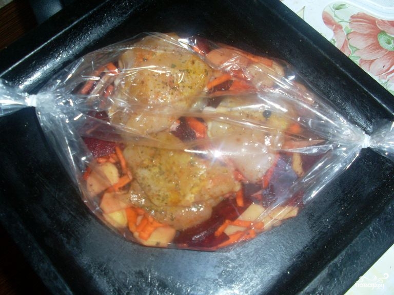 Для этого блюда понадобится рукав для запекания. Его можно приобрести в отделах где продают фольгу, пищевую пленку и т.